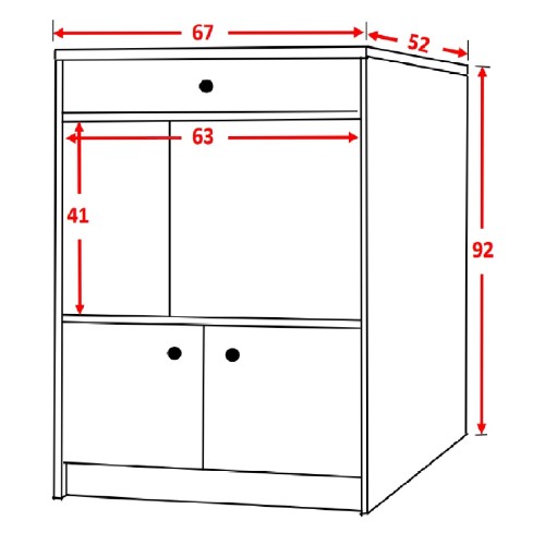 - Ölçülerimiz görseller içinde yer almaktadır. Eni 67 cm , yüksekliği 92 cm , derinlik 52 cm'dir.